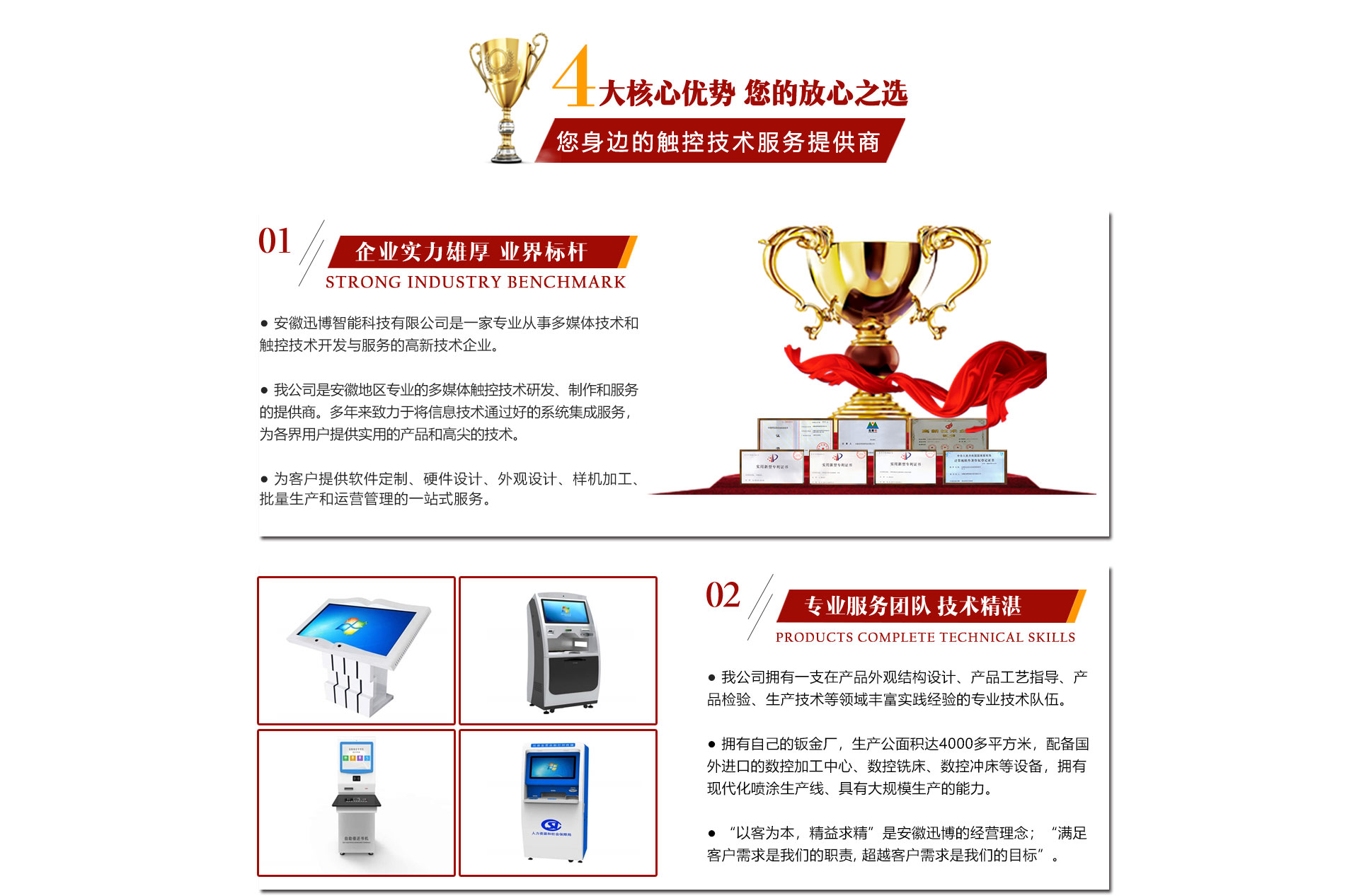 迅博科技 位于中國科教城---合肥市,地處合肥市肥西縣湯口路與皋城路交口西北角人民萬福產業園一期12棟,是一家計算機信息領域的高新技術企業公司,全心全意服務于信息化建設,做信息化提供商,全力打造信息時代新模式。引進了現代企業管理模式和完善的競爭、激勵機智,既具備國有企業的信譽,又兼備努力拼搏、一致向上的精神。迅博科技 擁有多項軟件著作權證書和多項硬件技術證書同時也是一家高新技術企業,注冊資本達500萬,辦公面積近1500平米,同時有合資在杭州成立自己的4000多平米的鈑金廠,公司擁有一支實力、富有經驗的計算機和信息技術隊伍和市場營銷隊伍,技術人員都有很強的背景和豐富的實踐經驗。一貫注重與...